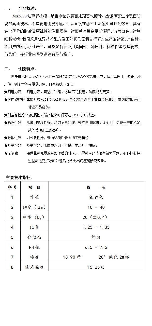 產(chǎn)品名稱:MX6380達克羅涂液